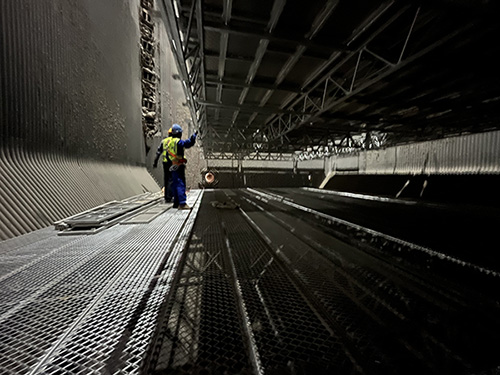 重慶市博賽礦業(yè)(集團)有限公司熱電廠一期項目建設有3臺500噸/小時超高壓燃煤鍋爐+2臺80兆瓦背壓機組,總投資約11.1億元,年發(fā)電量12億千瓦時。該熱電廠于2023年10月采購金道成一套爐底支撐平臺和爐膛檢修升降平臺,并于當年年底1#爐停爐,使用我司檢修平臺開展爐膛水冷壁和水冷屏檢修工作,使用中檢修平臺拆裝快捷方便,并安全高效的完成了檢修工作,金道成公司的檢修平臺獲得了熱電廠領(lǐng)導和一線檢修工人的一致好評!該熱電中心于2024年10月再次采購兩套爐底支撐平臺和爐膛檢修升降平臺,供2#、3#爐停爐檢修使用,實現(xiàn)3臺鍋爐同步停爐,同步集中檢修!